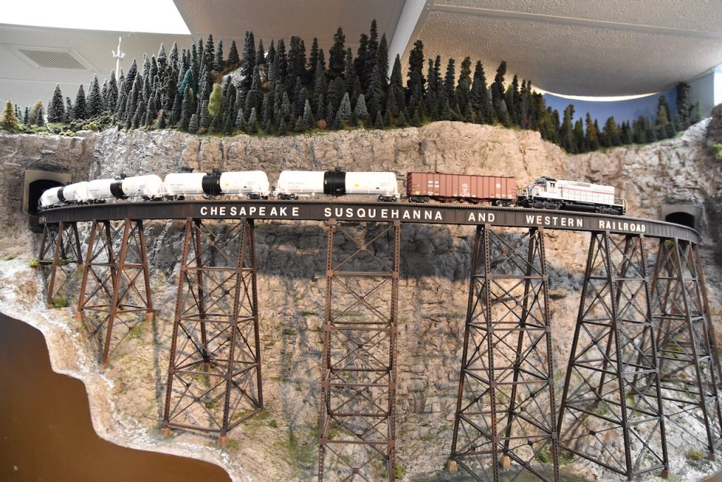 In the afternoon, four generous model railroaders opened their home layouts for visitors: Scott Wooddell, Bill Freeland, Ken Poznaniak, and David DiCarlo.